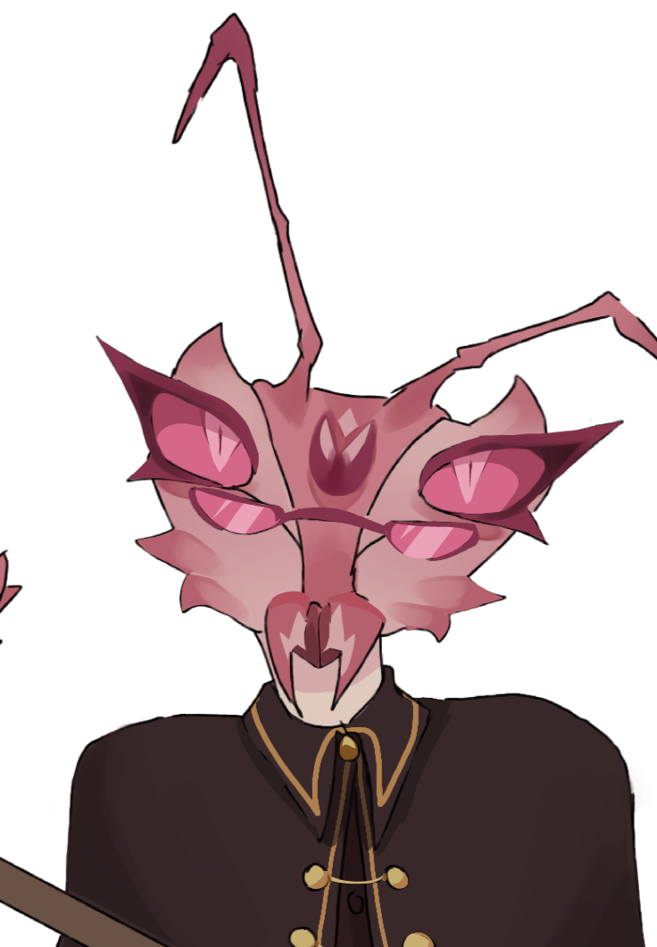 Type: Feminine VoicebankRange: ?Languages: 日本語Weight: 20kgHeight: 300cmAge: 18Blood: Non-humanMonster Race: MantidLikes: Leaves, bugs, weaponsmithingDislikes: Monsters, fire, eelsPersonality: Jaded. Plays a lot of tricks sometimes.Occupation: Monster Hunter, WeaponsmithKatja sees all impurities… Well when it comes to weapons and monsters, but especially monsters. Although she is a monster herself, she dislikes monsterkind and is a traitor. She works with Charlotte Blackheart to free society from monsters. Other than that, she is a talented weaponsmith and has won many awards for her work.